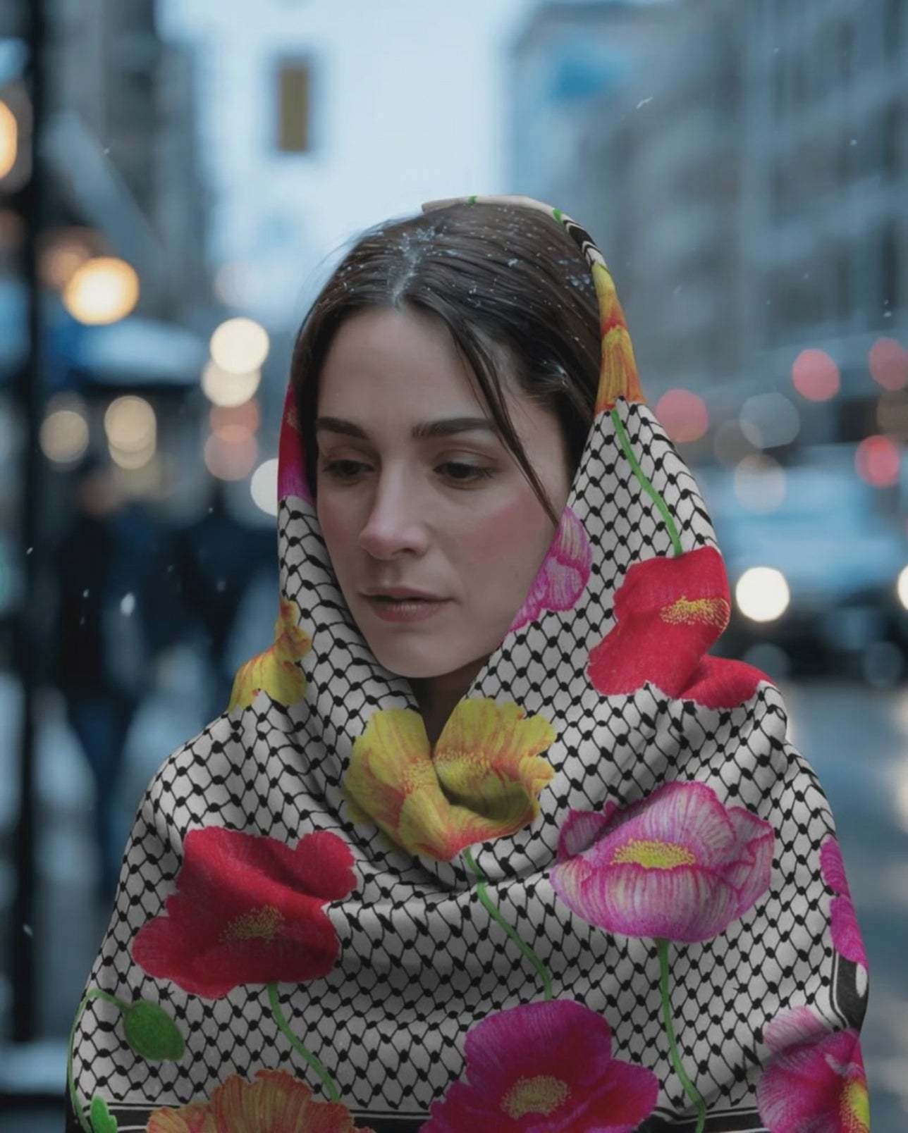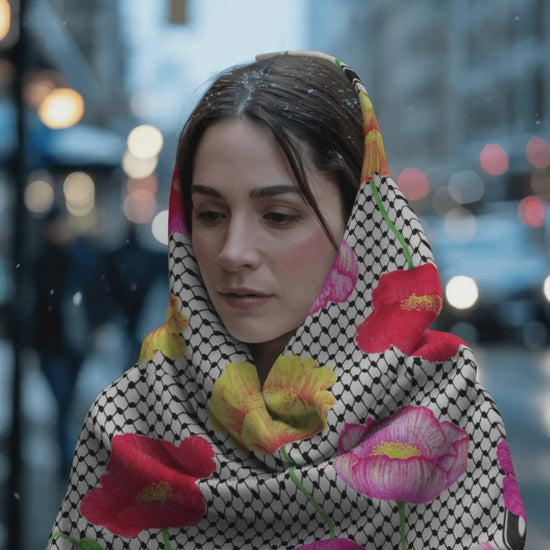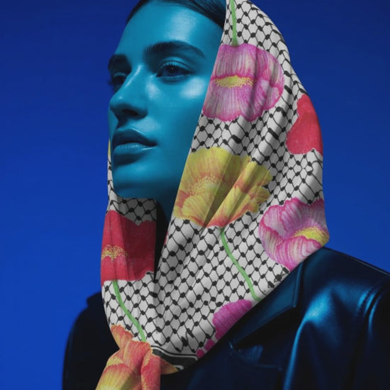 A whisper of heritage, woven in pure silk. This ethereal scarf is where timeless Palestinian symbols meet understated luxury. In a delicate dance of design, the iconic poppy—a symbol of resilience—intertwines with the classic kuffiyeh pattern, representing a deep-rooted identity. This piece is not just an accessory; it is a quiet, powerful statement of art and heritage, reimagined with contemporary elegance.