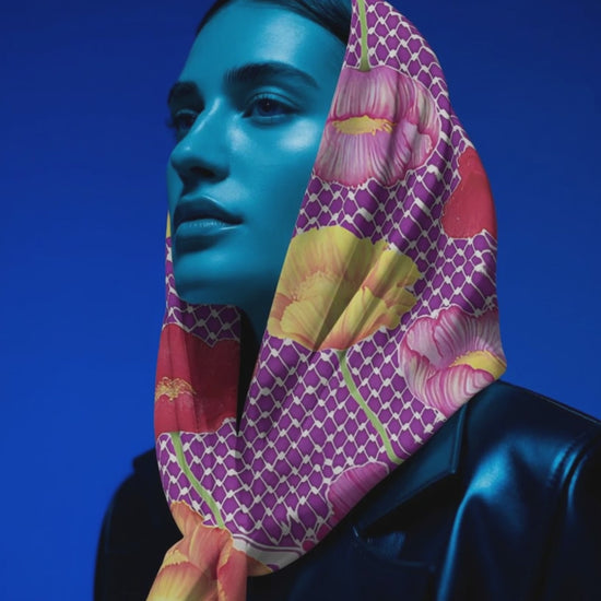 Palestinian Poppy Fields (Purple) Kuffiyeh Silk Scarf - Laila Shawa